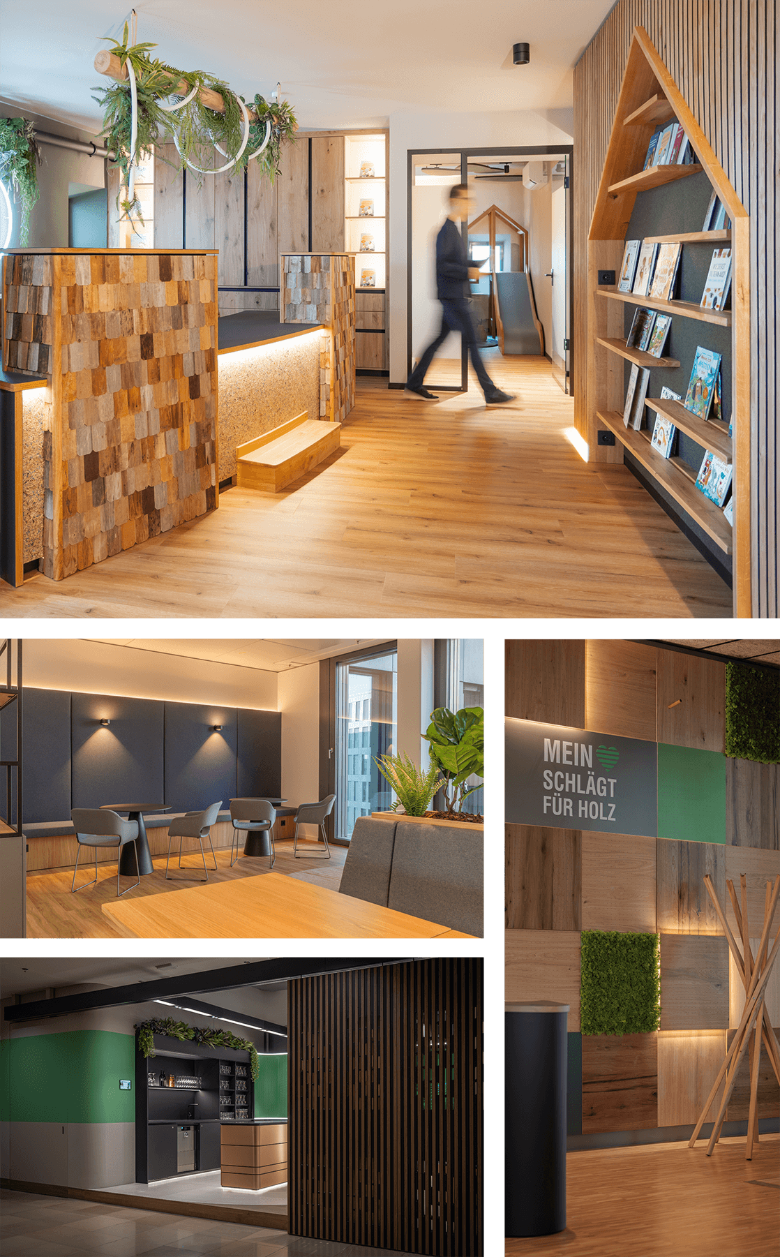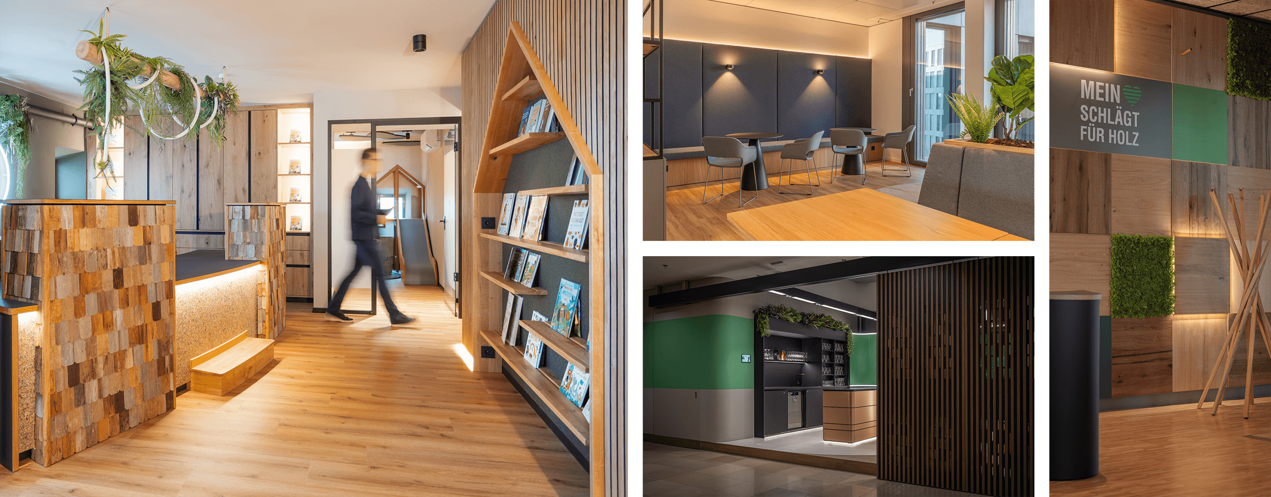 Holz steht im Mittelpunkt unserer Arbeit. Aber wir setzen auch andere Materialien ein, aus denen wir spannende Kombinationen und interessante Detaillösungen entwickeln.
